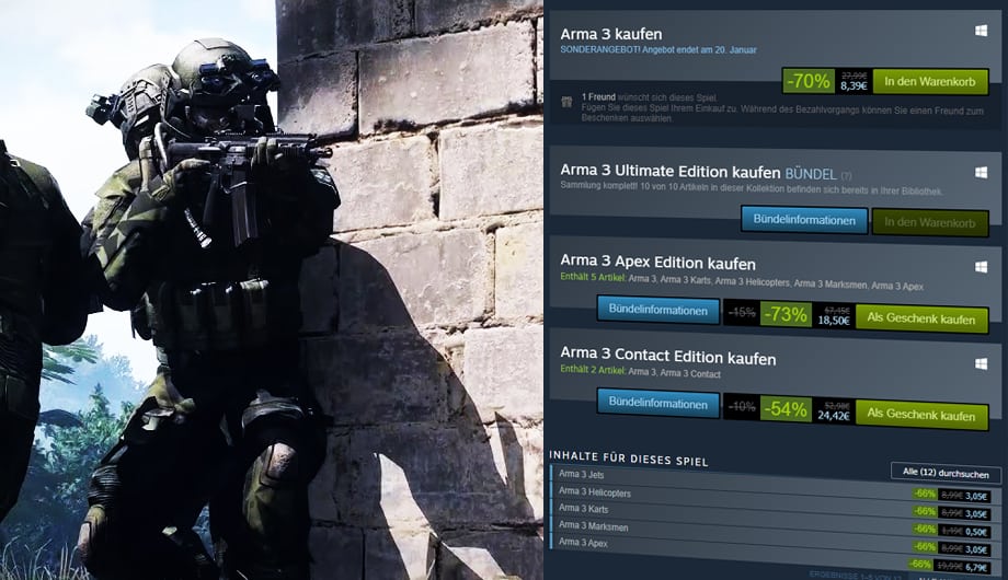 Allgemein ArmA 3 Game News ArmA 3 Sale 70% und mehr! F2P bis 19.01.2020 15. Januar 2020 by [niCe] sCope 0 0